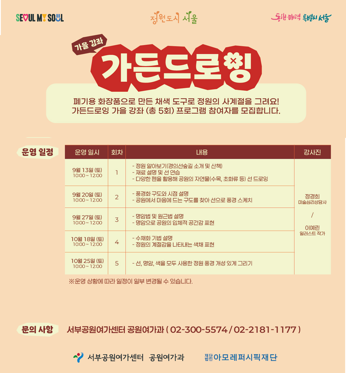 가든드로잉 여름편도 신청했었는데 다행히 탈락(폭염)하고 이번 가을편에 선정이 되었다.