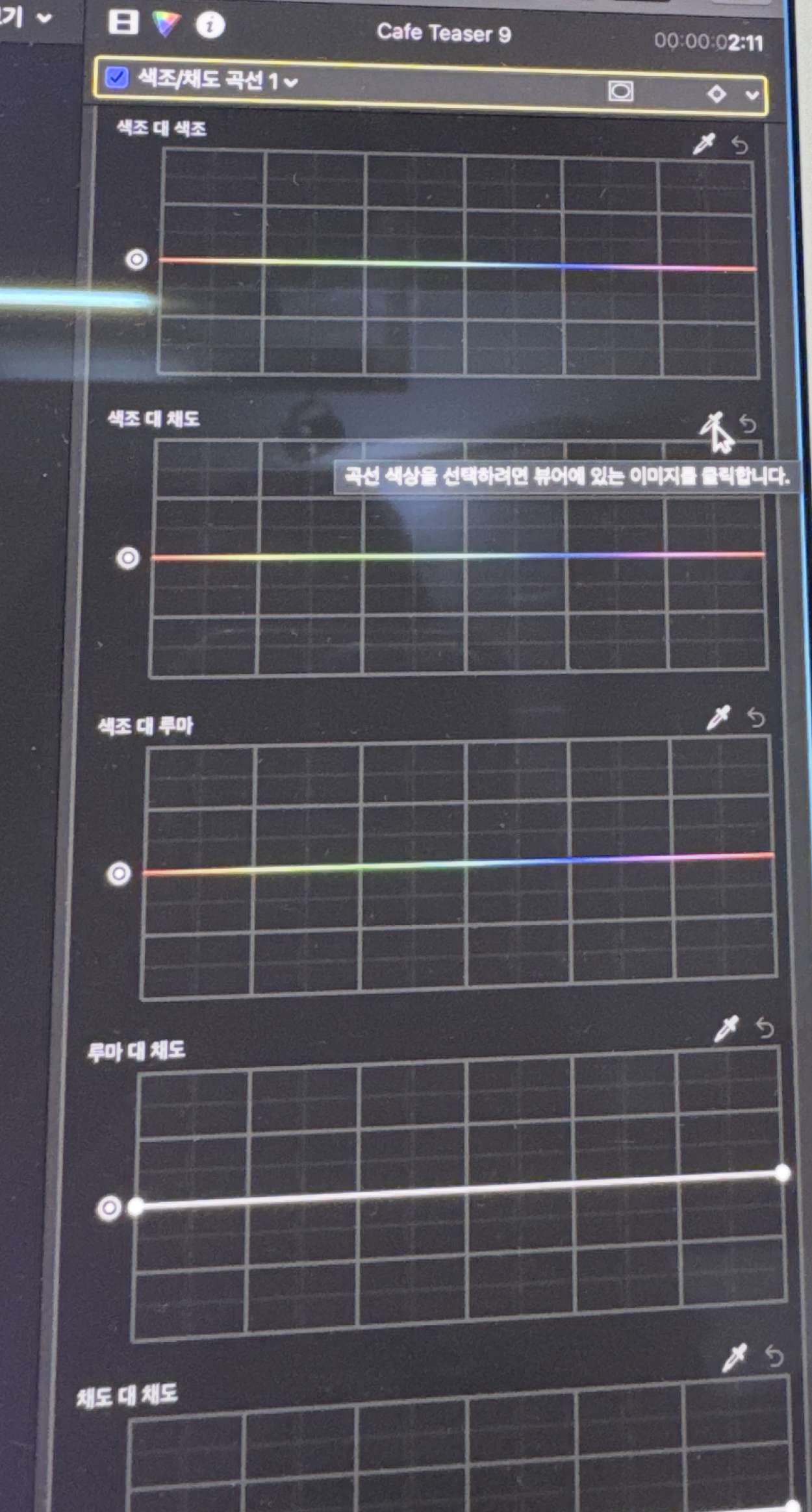 색조/채도 곡선 - 색조대채도: 스포이드로 조절할 색조를 선택