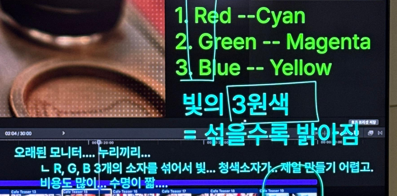 색의 3원색(=안료 3원색)cmy-잉크토너와 같음. +kappa(검정) cmyk