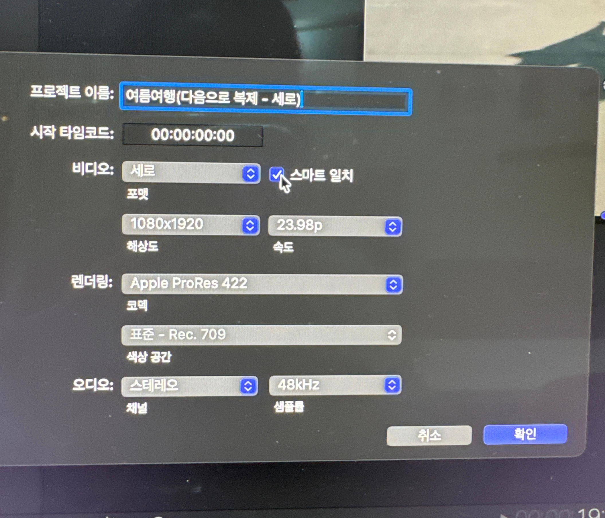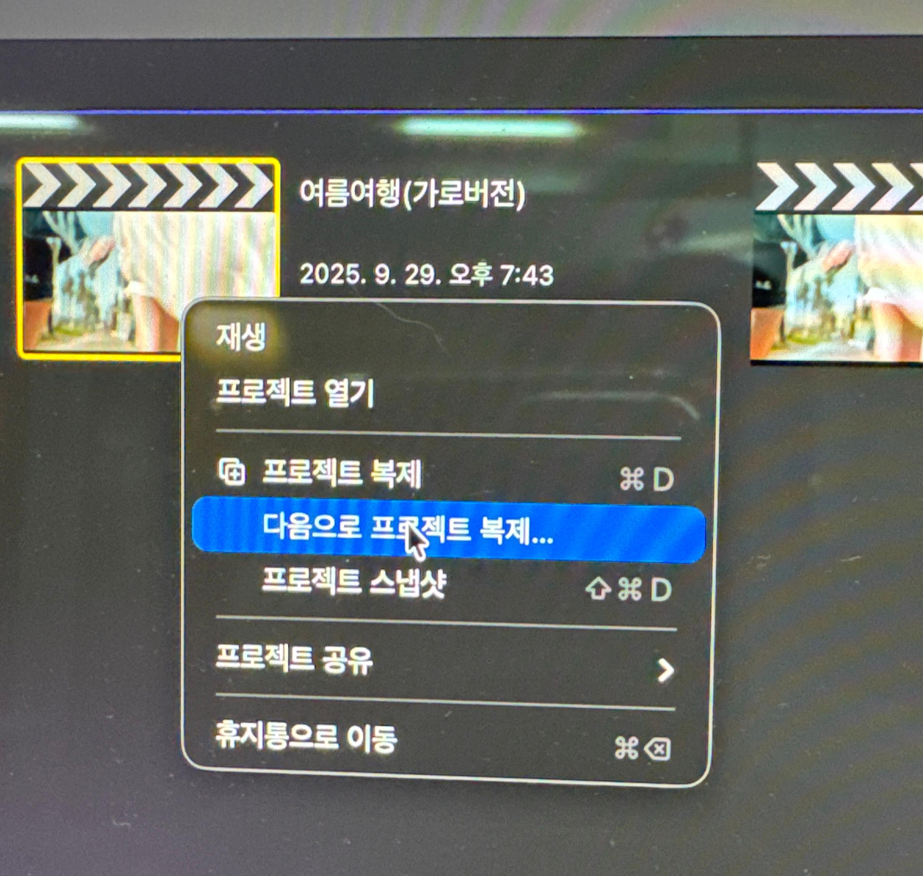 프로젝트 속성에서 세로로 만들 수 있으나 해상도(가로 세로 비율) 변경 안됨 - 다음으로 프로젝트 복제.