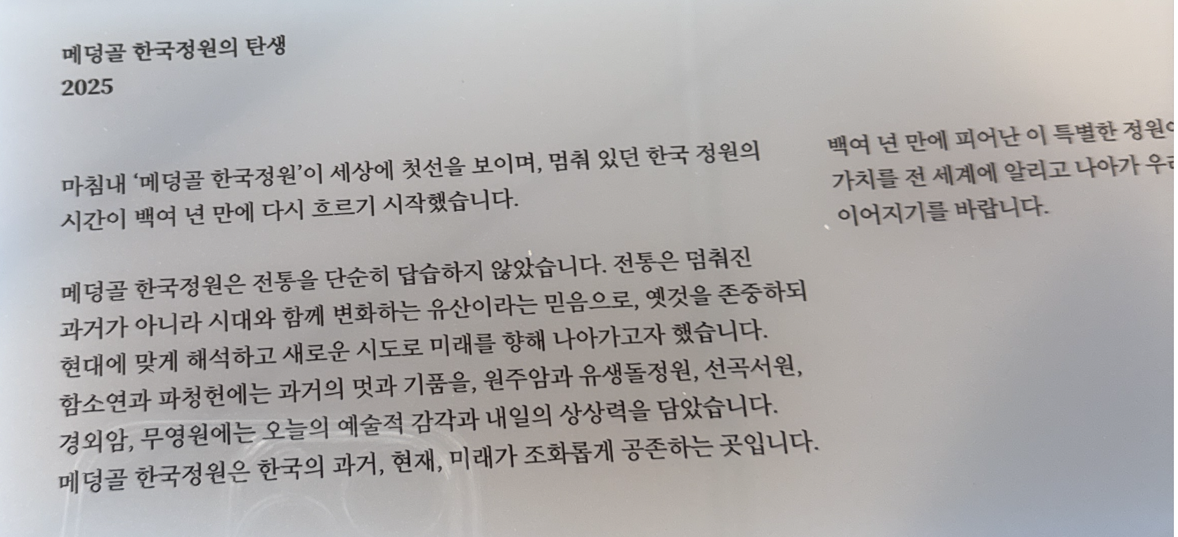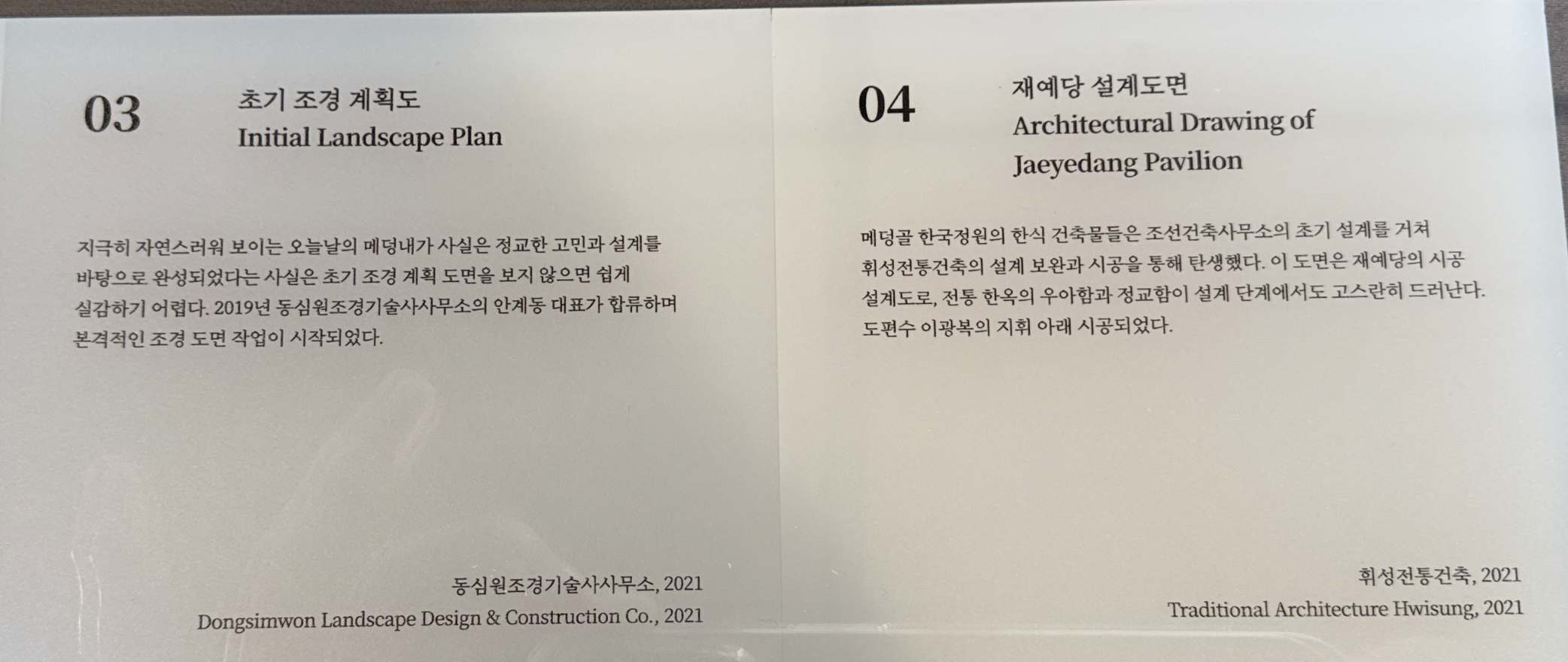 이재영 조경 총괄 감독님의 끝으로 하신 말은 꽃이 있는 봄이나 단풍이 곱게 물든 가을이 아니라 아쉽다는 것이 아닌 '정원의 날 것을 보는 좋은 시간이 됐을 것이다'라는 것이다.