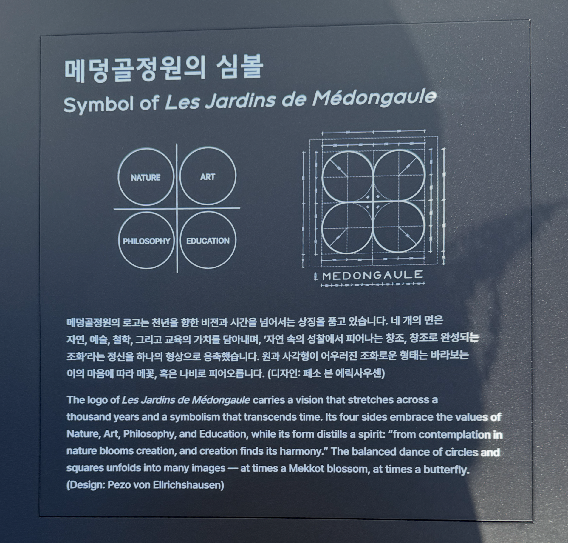 메덩골정원 심볼은 자연, 예술, 철학, 교육의 가치를 담고 있다.