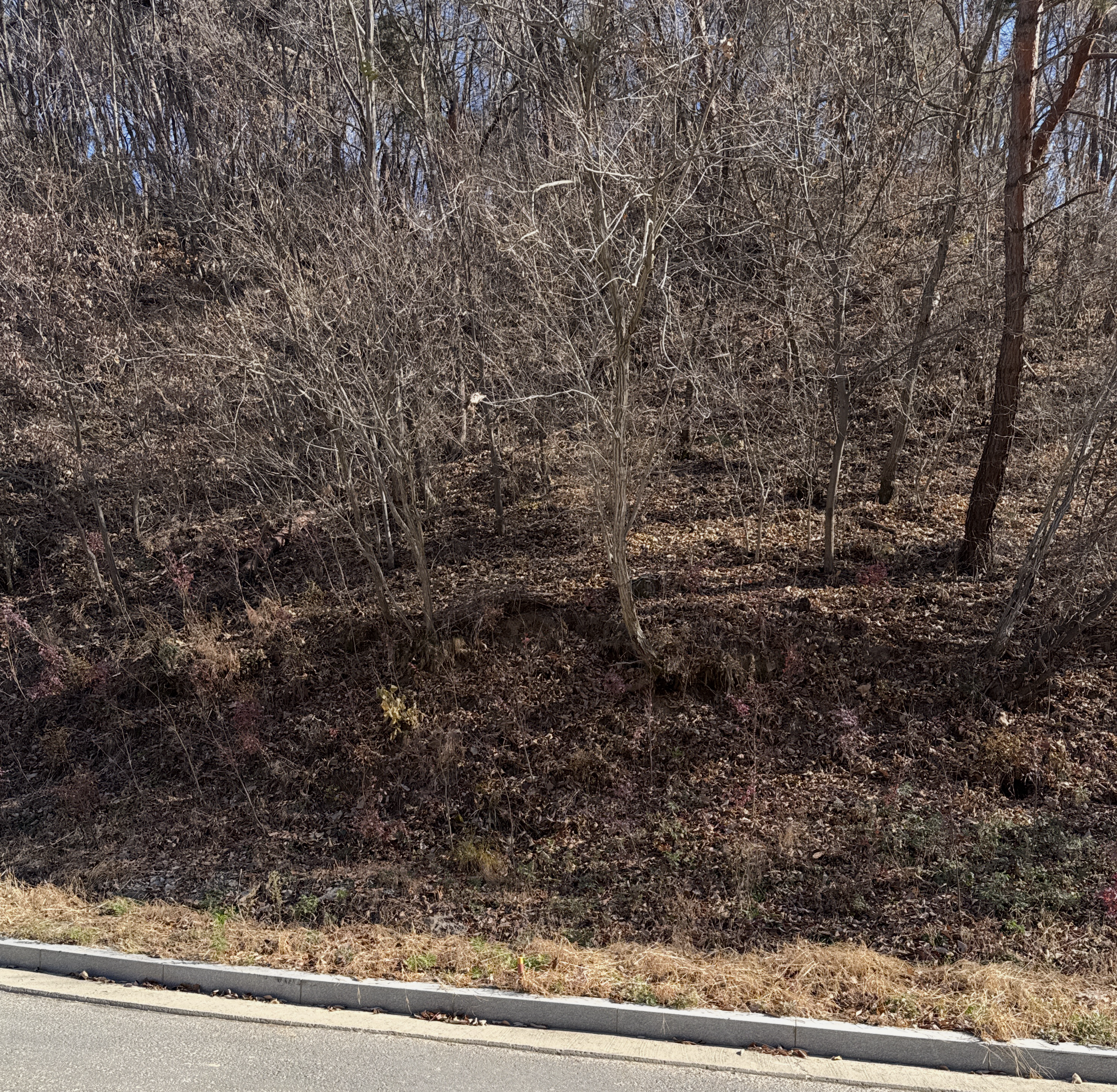 (가는 길에 내장산표 단풍나무 가 좌우로 심겨있다. 메덩골정원의 천년 미래의 하나의 시작이다.)