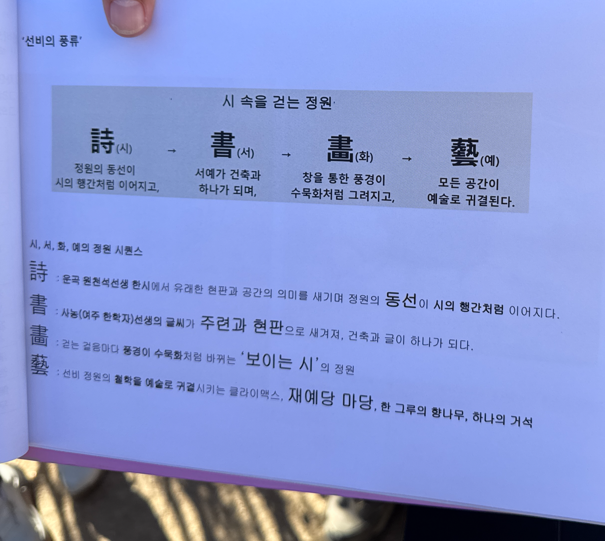 한국정원의 현판은 사농 전기중 선생님 한분께서 쓰셨다는데 같은 서체가 없다고 한다. 여기 '시 속을 걷는 정원'의 현판과 주련은 고즈넉한 풍류를 더 하고 있다.